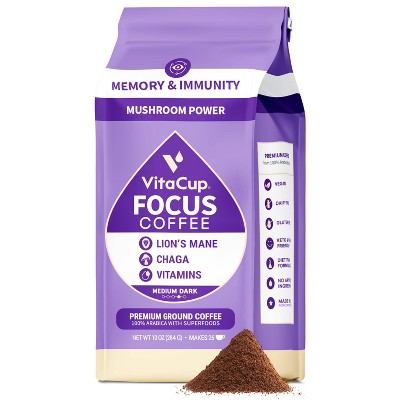 Vitacup Focus Ground Coffee Medium Roast Cognitive Immunity Support Lions Mane Chaga Mushroom B Vitamin 10oz Target